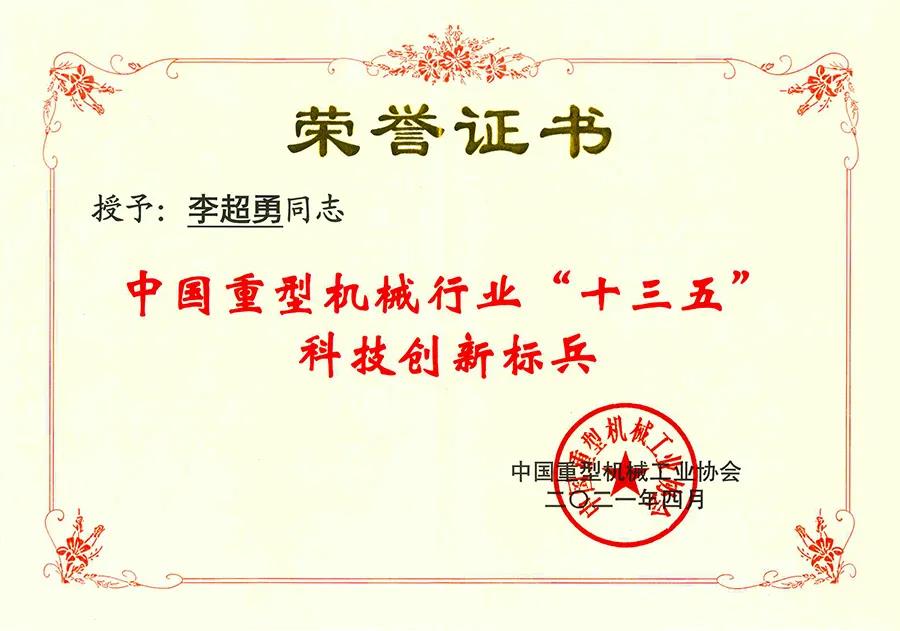 4月16日,中國重型機械工業協會八屆二次會員代表大會暨理事會在北京召開,會議對中國重型機械工業協會“十三五”期間在科技創新方面取得的成績進行總結表彰,雙鳥機械榮膺“中國重型機械行業'十三五'科技創新標兵企業”。作為中國重型機械工業協會副理事長單位,雙鳥機械總經理盛嘉慶應邀出席會議并領獎。雙鳥機械技術部經理助理李超勇榮獲“中國重型機械行業'十三五'科技創新標兵”。