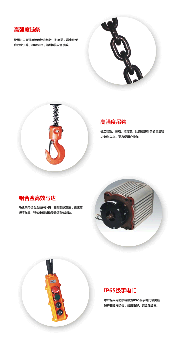 8.起重鏈條是特殊合金鋼制作并經(jīng)過熱處理,不能私自進(jìn)行焊接或改裝。
