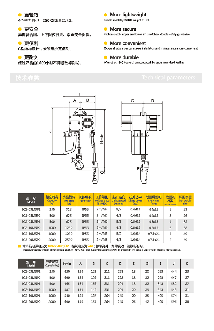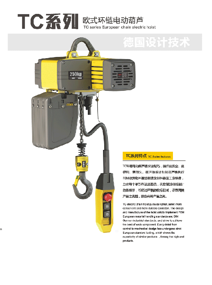 雙速起升速度為標(biāo)準(zhǔn)配置,備有吊鉤式與吊耳式兩款懸掛方式,也可直接與電動(dòng)小車吊銷連接,使其連接更為完美。